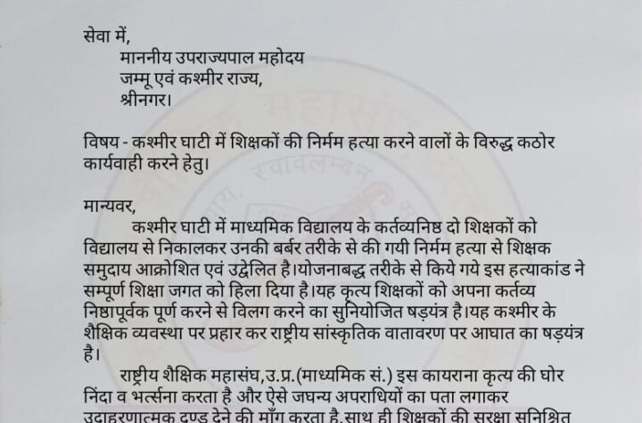 लख़नऊ/हेड कश्मीर घाटी में माध्यमिक विद्यालय के कर्तव्यनिष्ठ दो शिक्षकों को विद्यालय से निकालकर उनकी बर्बर तरीके से की गयी...