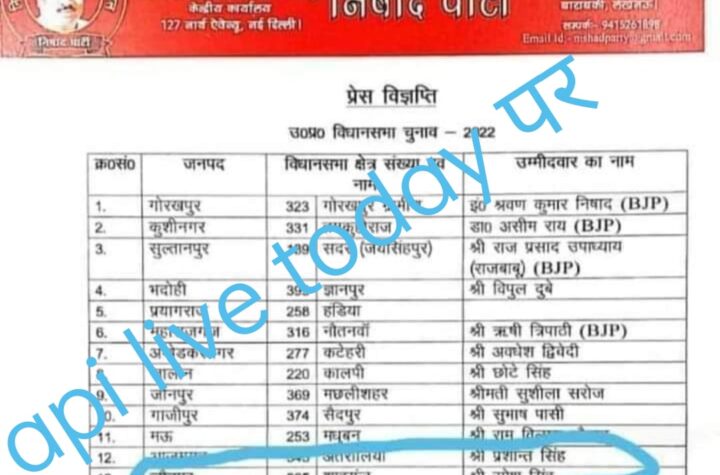 बिग ब्रेकिंग.... गोरखपुर में गोरखपुर ग्रामीण से विपिन सिंह समेत तमाम दिग्गज़ों के उम्मीदवार पर फिरा पानी निषाद खाते में...